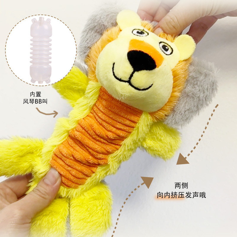 Add fun to your dog’s playtime with this dual-sided plush toy! Featuring two cute designs in one, it comes with a built-in squeaker that emits funny sounds to instantly attract your pet’s attention. Made of soft non-toxic plush with reinforced stitching, it’s gentle on gums while durable enough for chewing. Perfect for interactive play with owners or self-play when alone, it relieves boredom and separation anxiety, reducing destructive behaviors. Suitable for small/medium dogs and teething puppies—safe, functional, and ideal for indoor/outdoor use.