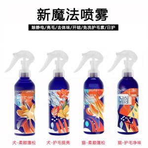 This multi – functional pet leave – in conditioner spray is a must – have for dogs and cats of all coat types! It effectively eliminates static, detangles tough mats, removes odors, and boosts coat shine—no rinsing needed. The gentle formula nourishes fur, softens strands, and prevents future tangles, while the fresh scent keeps pets smelling great between baths. Easy to use: just spray and brush. We offer full OEM/ODM customization—logo printing, scent/formula tailoring, and packaging design. Safe, non – irritating, and suitable for daily grooming, it keeps pets’ coats smooth, fluffy and healthy effortlessly.